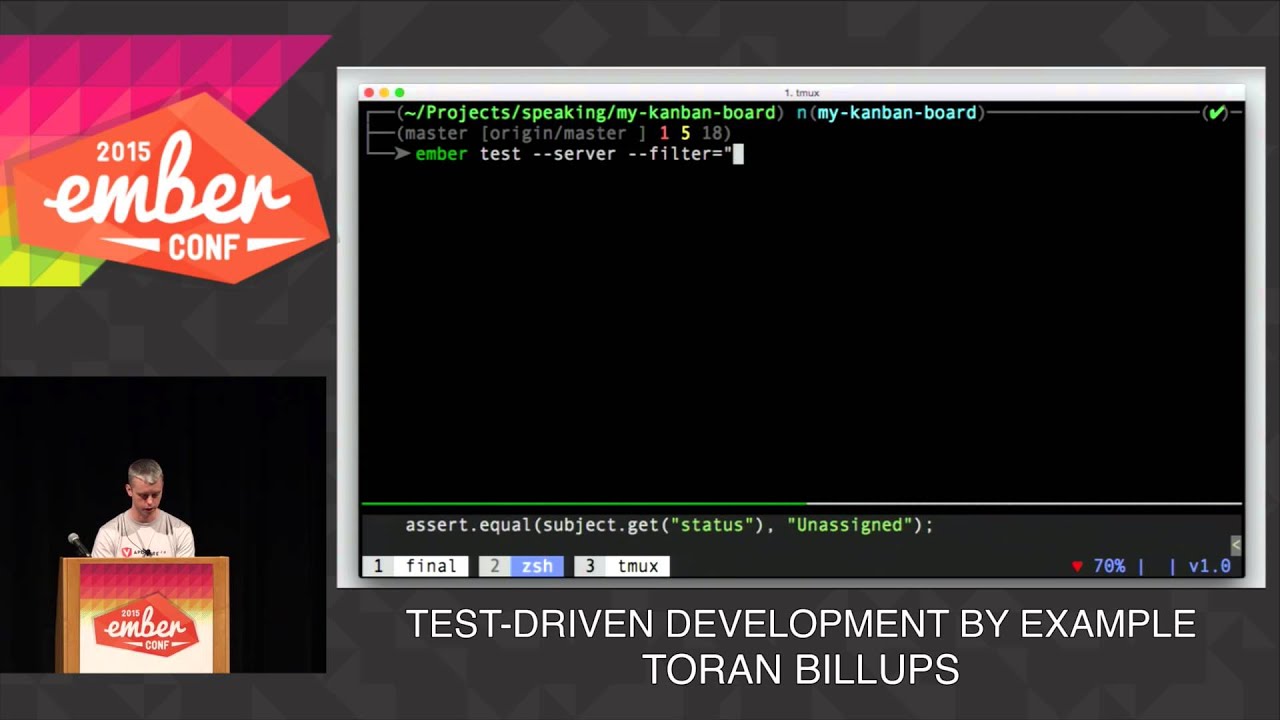 We do have some unit test and what was really difficult for me is to find out how to instantiate Ember objects in isolation (which you should do for unit testing). For each type (view, controller, route) it was a really hard to find out. For example who could ever guess that you have to configure container with optionsForType() before registering any template…